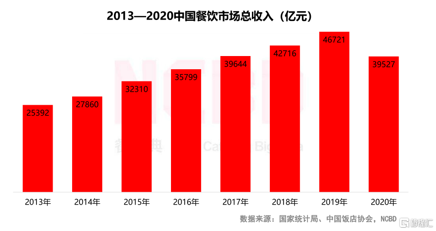过去的一年对于餐饮业来说是艰难的一年。受疫情影响,2020年我国餐饮行业收入为3.95万亿元,同比下降16.6%。