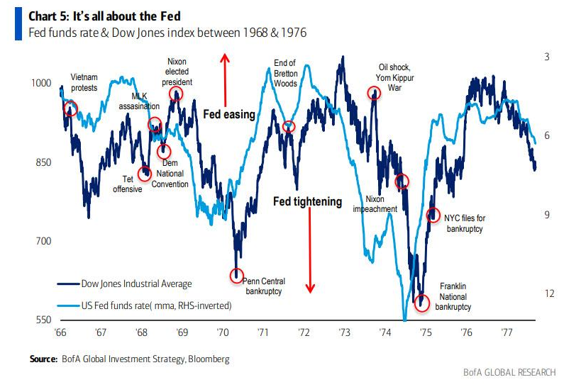 正如下图所示,无论是1968年还是当下,美联储都是主导市场走势的那只看不见手: