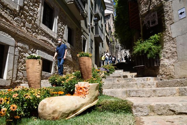 5月12日,人们在西班牙赫罗纳老城参观鲜花节。(新华社发,卿胜蓝摄)