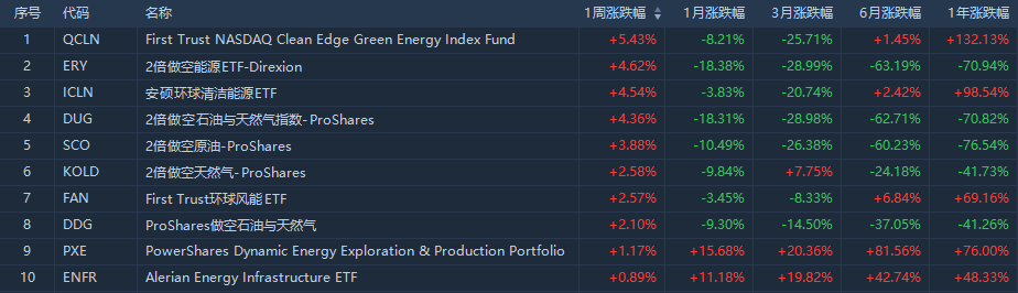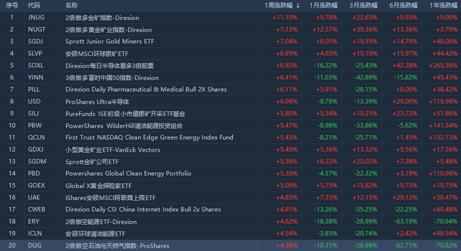 1、本周美股ETF涨幅榜