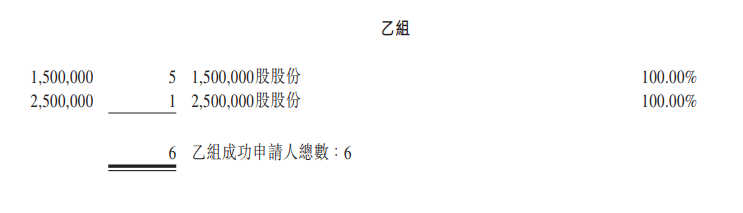 公开发售一手中签率50.01%,申购10手稳获一手,乙头获配1500手。