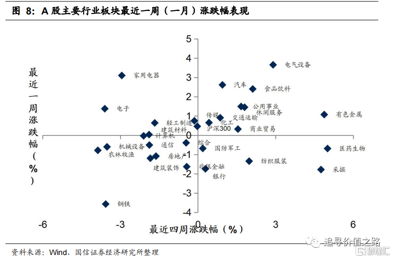 上周申万一级行业上涨略多,其中电气设备大幅领涨,而钢铁行业表现较差。具体来看,上周电气设备行业上涨3.7%,在申万各一级行业中大幅领涨。家用电器和汽车单周分别上涨3.1%和2.6%,涨幅同样居前。钢铁行业单周下跌3.6%,在申万各一级行业中表现垫底,采掘和银行分别下跌1.8%和1.7%,表现同样较为靠后。