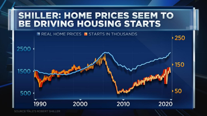 席勒发现,在过去30年里,房价推动了新屋开工。