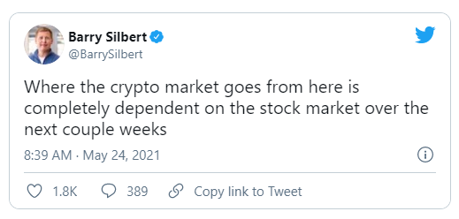 在加密货币暴跌的星期天晚上,数字资产领域的佼佼者Barry Silbert发布的一条推文中表示,股票投资者不应只关注股市。