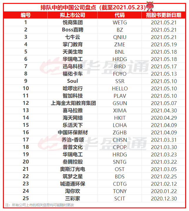 除了以上预计本周上市的4只新股外,还有以下表格中一批正在SEC排队等待上市的中国公司值得关注,其中包括: