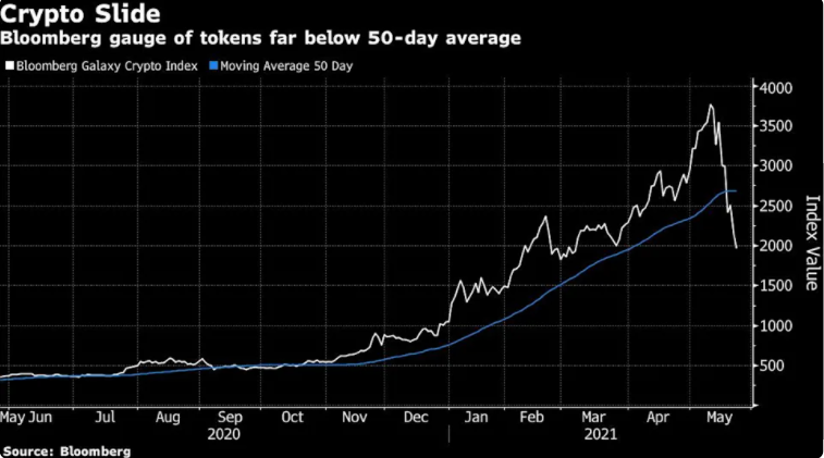 上周除了加密货币暴跌外,彭博银河加密货币指数(Bloomberg Galaxy Crypto Index)下跌近40%,是自去年3月全球大流行以来的最大跌幅——巨大的盘中价格波动也吸引了投资者的注意。