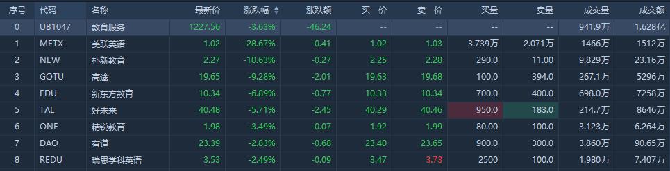华盛资讯5月24日消息,在线教育中概股盘初普跌,截至发稿,美联英语下跌超28%,朴新教育下跌超10%,高途下跌超9%,新东方教育下跌超7%。