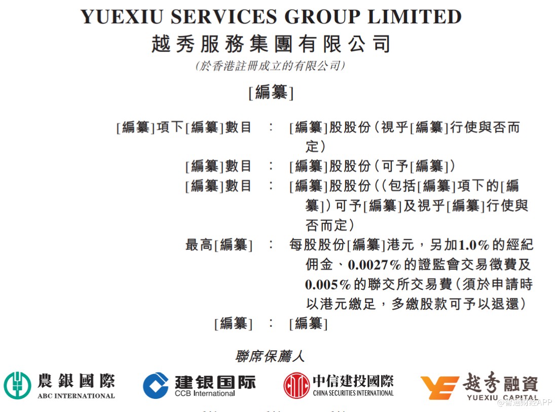 据港交所5月24日披露,越秀服务集团通过港交所主板上市聆讯,农银国际、建银国际、中信建投国际及越秀融资为其联席保荐人。