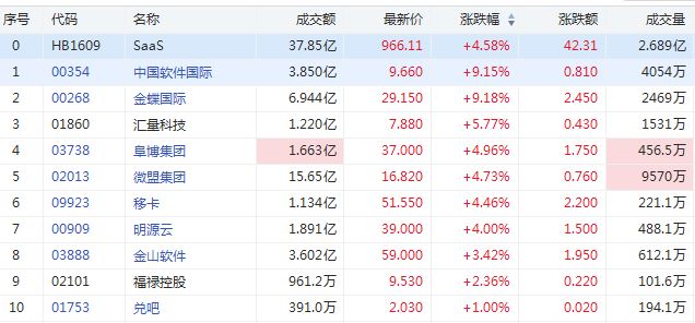 华盛资讯5月25日消息,SaaS概念股午后集体上扬,截至发稿,金蝶国际、中国软件国际涨超9%,汇量科技涨超5%,微盟集团、移卡、阜博、明源云涨超4%,金山软件涨超3%。