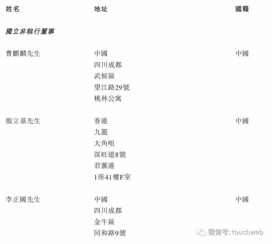 执行董事武敏女士、陈静女士;非执行董事为张明贵、姜孟军、董李、黄坤女士;独立非执行董事为曹麒麟、殷立基、李正国。