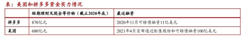 目前最强的竞争选手,是美团和拼多多。二者市值超万亿,账面现金充足,背后有上市公司作为融资渠道,可进行长期持续作战。