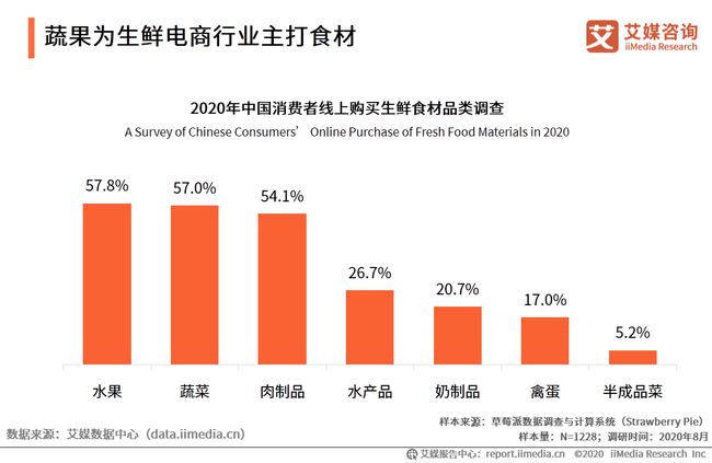 其中,生鲜领域市场潜力最大,超五成用户主要在线上购买蔬菜、水果及肉制品,食材的购买是最主要的需求。可见社区团购中,食品生鲜和日用品是其主战场。