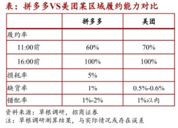 第四,从仓配角度看,美团的管理更为精细化,网格抗风险能力更强,在履约率、损耗率、缺货率及错配率方面,美团更好的表现将带来更优的消费者体验与更低的长期成本,这一降本增效的良性循环无疑具有重要长期价值;而拼多多的的仓配环节(尤其网格仓环节)管理则相对粗放。