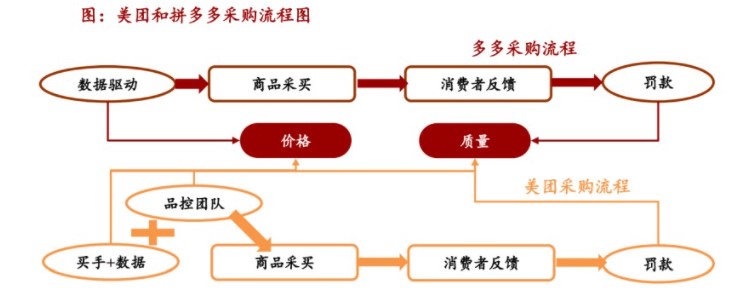 第五,从供应链角度来看,美团的商品采选环节更为精细化,更注重品控与消费者体验,而多多买菜则以价格为主要考虑指标,品控要求相对后置;多多买菜的另一大优势在于,因依托于主站的生鲜产地仓,在生鲜供应链资源上具备一定优势,不仅减少中间环节提升了毛利率,也可获得更为稳定可靠的货源。