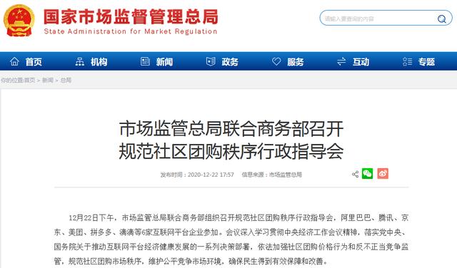 这一轮价格战很快受到了官方的注意,2020年12月,市场监管总局召开规范社区团购的秩序行政指导会,要求企业遵守“九不得”。