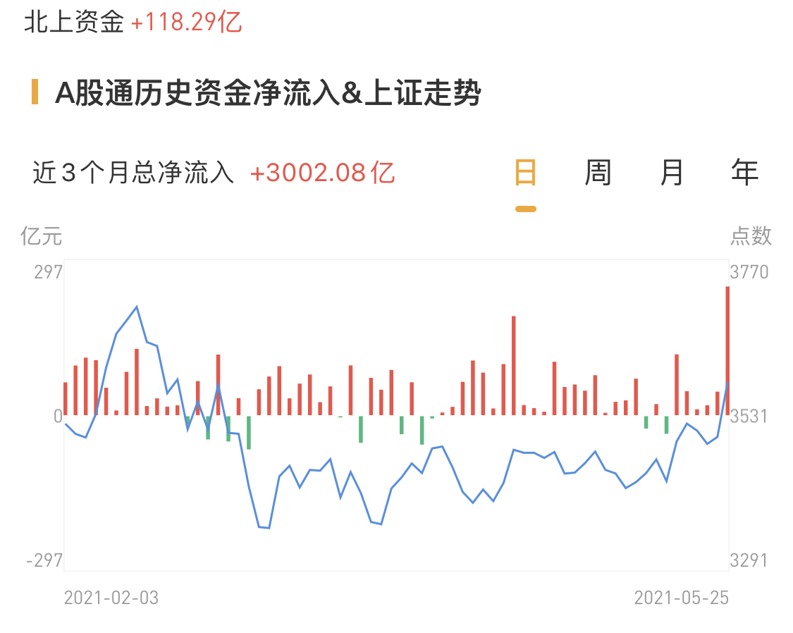 北上资金今日净流入118.29亿元。