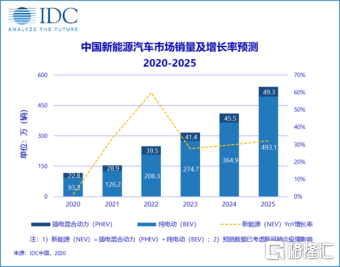 按照IDC的预计,未来5年中国的新能源汽车每年的增幅都将在30%以上。