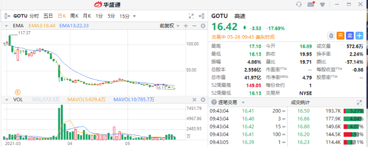 月26日晚间消息,中概股在线教育公司普跌。截至发稿,高途跌超17%,报16.42美元/股,当前市值近42亿美元。