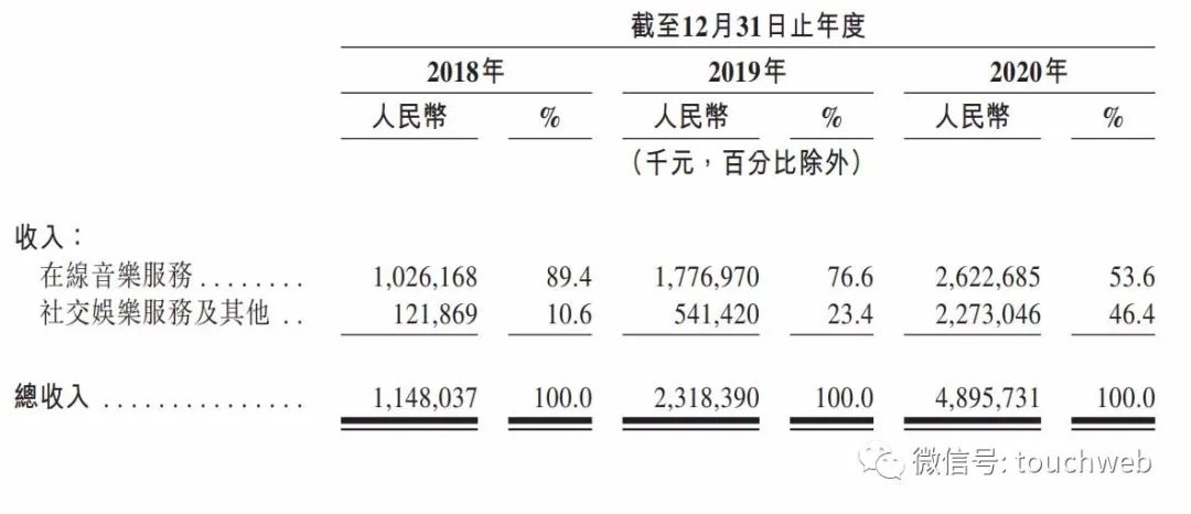 招股书显示,网易云音乐2018年、2019年、2020年营收分别为11.48亿元、23.18亿元、48.95亿元。
