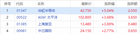 华盛资讯5月27日消息,芯片概念股今日集体攀升,华虹半导体涨超5%,ASM太平洋、上海复旦涨超3%,中芯国际涨超2%。