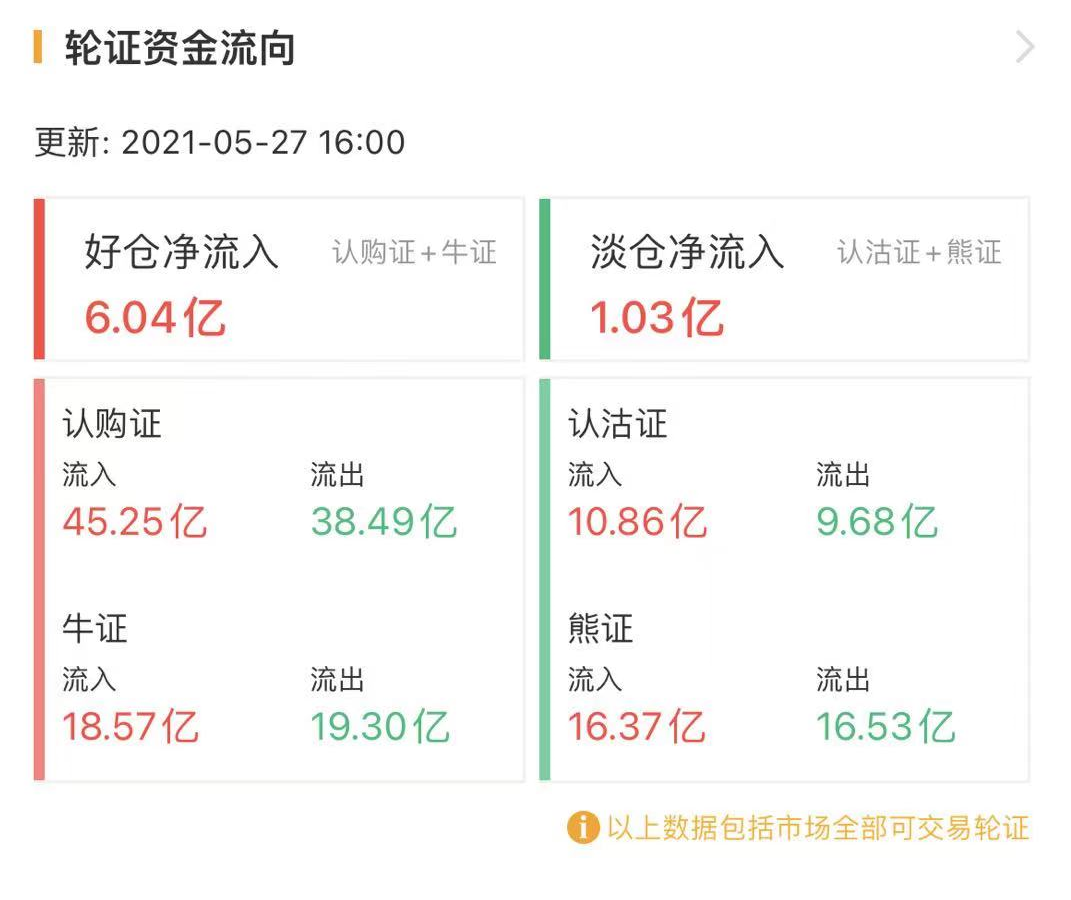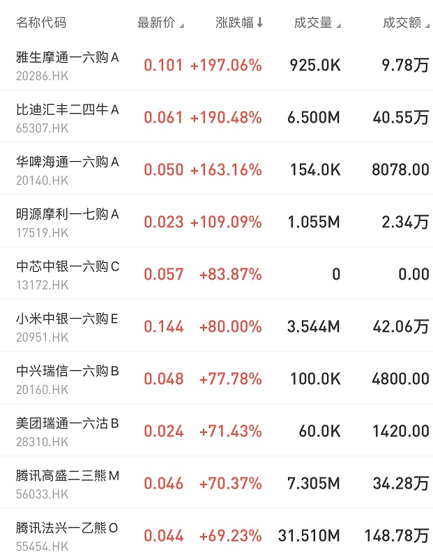 其中,窝轮总成交101.31亿港元,牛熊证总成交81.20亿港元。