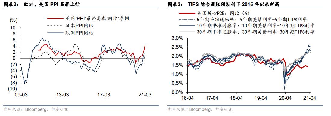 华泰证券表示,如果在接下来的数月中,核心PCE(非年化)环比连续超过 0.3%,则预示短期通胀上行“高度”可能超出美联储预期2%。同时,如果 TIPS 隐含的长期通胀预期重新上行,则市场对 6 月或 9 月议息会议中美联储提出“有条件”调整 QE 规模的时间表就会开始有所预期。