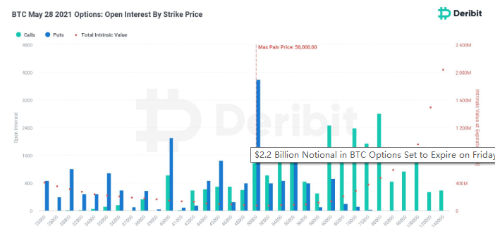 根据Skew Analytics的数据,超过5.5万份比特币期权合约将于美东时间5月28日凌晨四点到期,价值22亿美元。