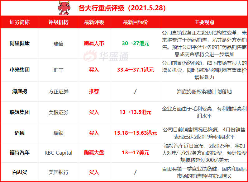 报告中称,公司首季业绩超预期,将其2021-23年度每股盈利预测上调9%/2%/2%,同时将其今年度AIoT(人工智能+物联网平台)收益增长率轻微上调,但维持其智能手机今年出货量于2亿部的预测不变。