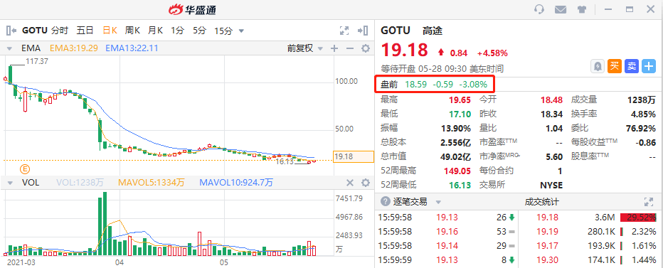 华盛资讯5月28日讯,今日美股盘前,截至发稿,高途(GOTU)盘前跌超3%,公司表示将停止小早启蒙面向3-6岁儿童的招生工作,并据此对组织架构和人员进行调整。