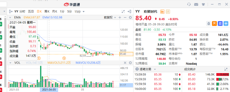 欢聚(YY)盘前跌超4%,第一季度全球移动设备平均月活用户(MAU)同比降15.1%。