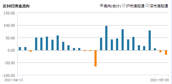 南下资金净流入港股76.86亿港元,上周为净流入202.6亿港元;