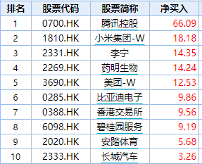 此外,南下资金本周加仓小米集团,净买入额达18.18亿港元;加仓美团12.53亿港元。还有李宁、药明生物、比亚迪电子、香港交易所等也获资金增持。