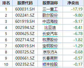 此外,北上资金还净卖出中远海控、比亚迪、长安汽车、牧原股份等个股。