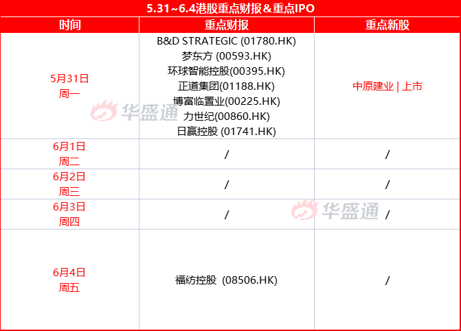 新股方面:31/05/2021中原建业(09982)IPO上市。
