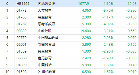 多家在美上市的教育类中概股下跌,截至5月29日收盘,朴新教育跌幅10.65%,新东方跌幅0.2%,高途下跌3.34%,网易有道下跌1.23%。周五港股市场,天立教育跌8.76%,新东方在线跌7.62%,希望教育跌4.17%,思考乐教育跌4.09%。