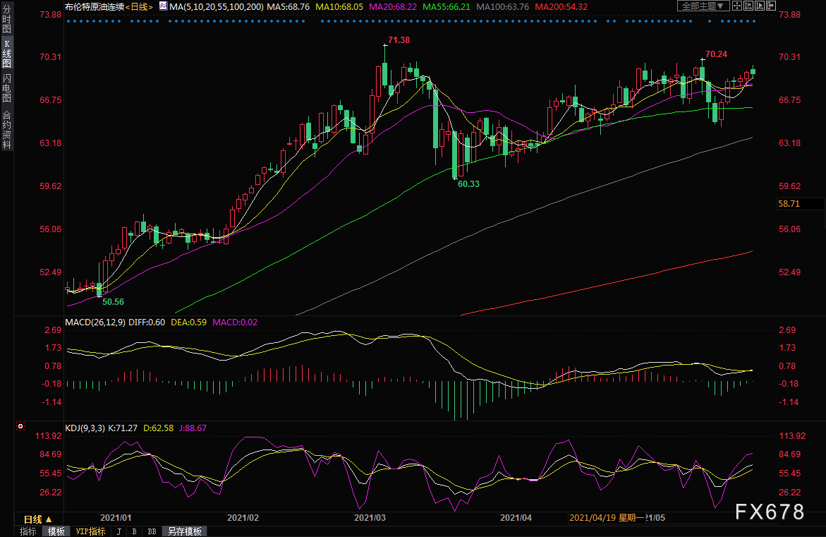 再次向每桶70美元的重要心理关口进发。鉴于消费者迅速回归,对疫情引发的需求担忧正在被乐观情绪所盖过”。