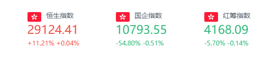 恒生指数上周涨2.34%,报29124;恒生科技指数上周跌0.84%,报7957;国企指数上周涨0.85%,报10793。