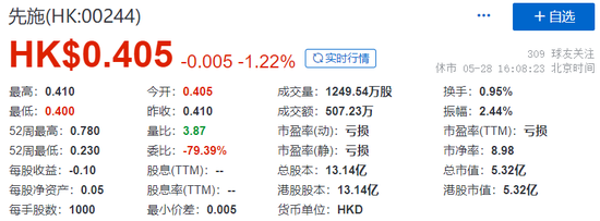 先施,截至5月28日收市,市值约5.32亿港元。