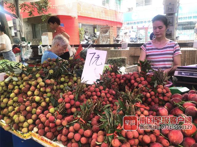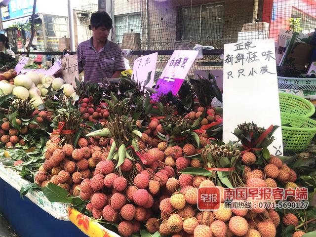 又是一年荔枝上市时,南宁市各大市场早熟荔枝占据C位。南国早报客户端记者了解到,今年广西荔枝丰收,市场上早熟荔枝同比去年价格有降。