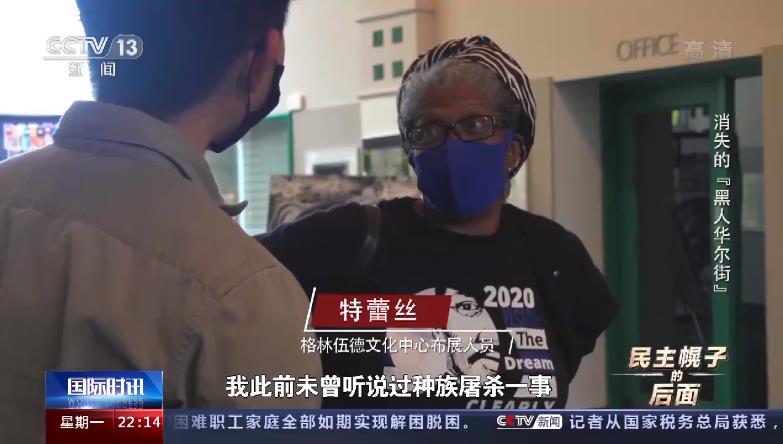 塔尔萨种族屠杀幸存者后代、知名民权人士 蒂凡尼·克鲁彻:美国一直在“洗白”历史,这个被称为“自由家园”的国家,这个号称“人人享有生命 自由和追求幸福的权利”的国家,却不愿意直视丑陋的历史,我们佯装这个国家的种族创伤正在被疗愈,然而我曾祖母的社区从未获得正义,屠杀的幸存者和他们的后代从未获得正义,我的家族从未获得正义。(央视记者 刘骁骞)
