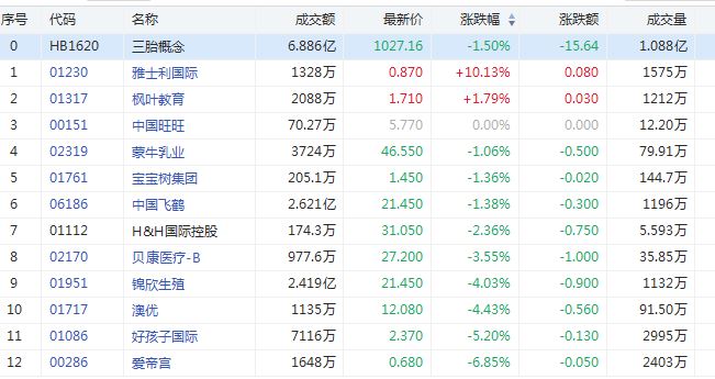 华盛资讯6月1日消息,三孩概念股今日盘前走势出现分化,截止发稿,雅士利国际涨10%,枫叶教育涨1.79%,中国飞鹤跌1.38%;锦欣生殖跌4%,好孩子国际下跌5%;爱帝宫跌6%。