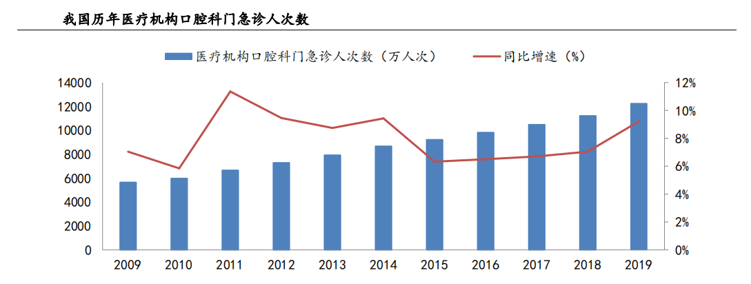 从数据上看近十年国内的口腔科门急诊人数逐年增加。