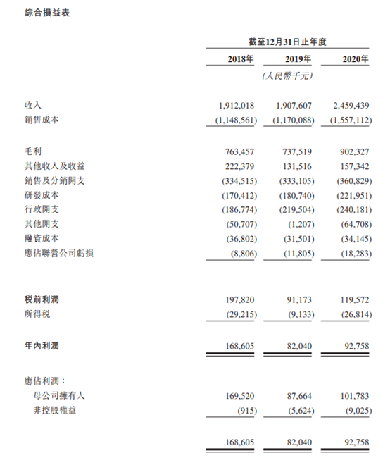 招股书显示,在过去的2018年、2019年和2020年三个财政年度,东软医疗的营业收入分别为19.12亿、19.08亿和24.59亿元人民币,净利润分别为1.69亿、0.82亿和0.93亿元人民币,近三年的研发支出分别占总收入的20.9%、21.4%及15.3%。