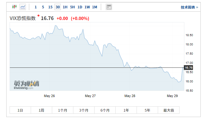 值得注意的是,市场的恐惧指标——芝加哥期权交易所波动率指数(CBOE VIX)——在5月13日较4月30日飙升55.5%之后下跌了近10%。