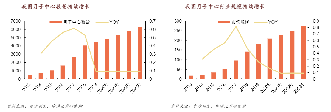 相比于市场相对成熟的医疗和母婴用品产业,具有中国特色的“月子中心”则是潜力巨大的成长市场。随着三孩政策的放开,对母亲的产后恢复和新生儿的照料则更需要专业的服务,市场或进一步打开。