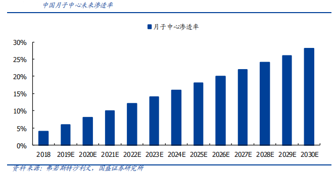 同时,相比于台湾地区目前高达60%的月子中心渗透率,大陆地区在2019年渗透率仅为6%左右。随着未来行业发展更加规范、三孩政策之后政策法规等措施的完善,月子中心的渗透率将进一步上市,成长空间巨大。