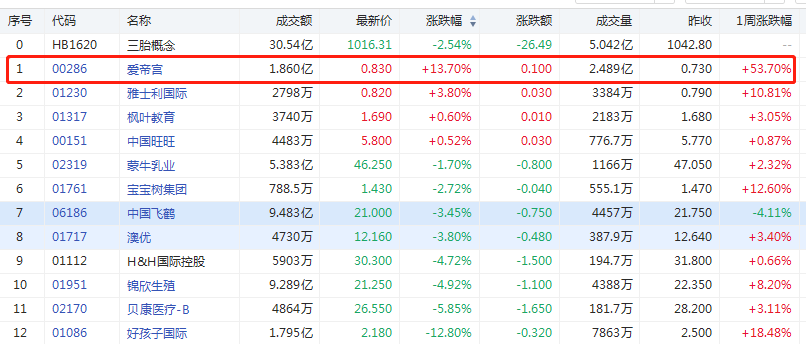 政策一出,股市相关概念股随即“迎风起舞”:5月31日收盘,儿童用品股好孩子国际(01086.HK)暴涨30%;辅助生殖医疗股锦欣生殖(01951.HK)大涨17.5%逼近历史新高;月子概念龙头股爱帝宫(00286.HK)涨幅超21%,创10个月新高。虽然今日(6月1日)相关股票迎来了一定程度的回调,但截至收盘,爱帝宫再次逆势大涨超13%,彰显强势。