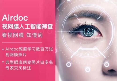 成立于2015年9月的「鹰瞳Airdoc」主要基于海量交叉标注的视网膜影像和人工智能技术,研发了人工智能视网膜健康风险评估系统,这一产品可以通过发现早期健康风险在视网膜上的异常表现,对于疾病的早发现、早干预、早治疗起到重大促进作用。
