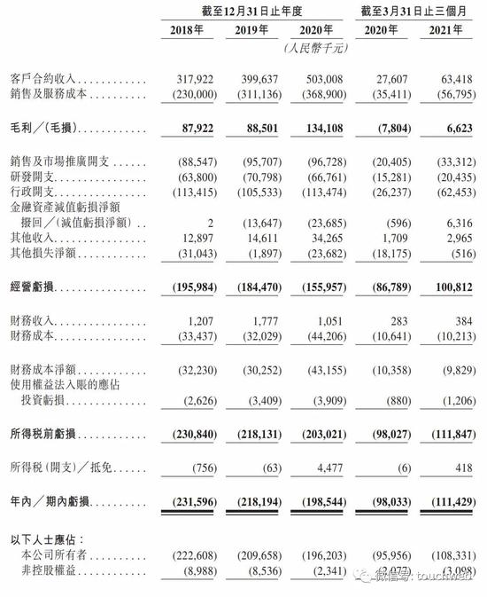 东软熙康2018年、2019年、2020年期内亏损分别为2.32亿元、2.18亿元、2亿元;东软熙康2021年第一季度期内亏损为1.11亿元,上年同期的期内亏损为9803万元。