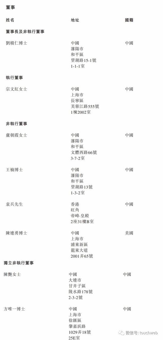 东软熙康董事长及非执行董事为刘积仁博士,执行董事为宗文红女士;非执行董事卢朝霞女士、 王楠博士 袁兵、陈连勇博士;